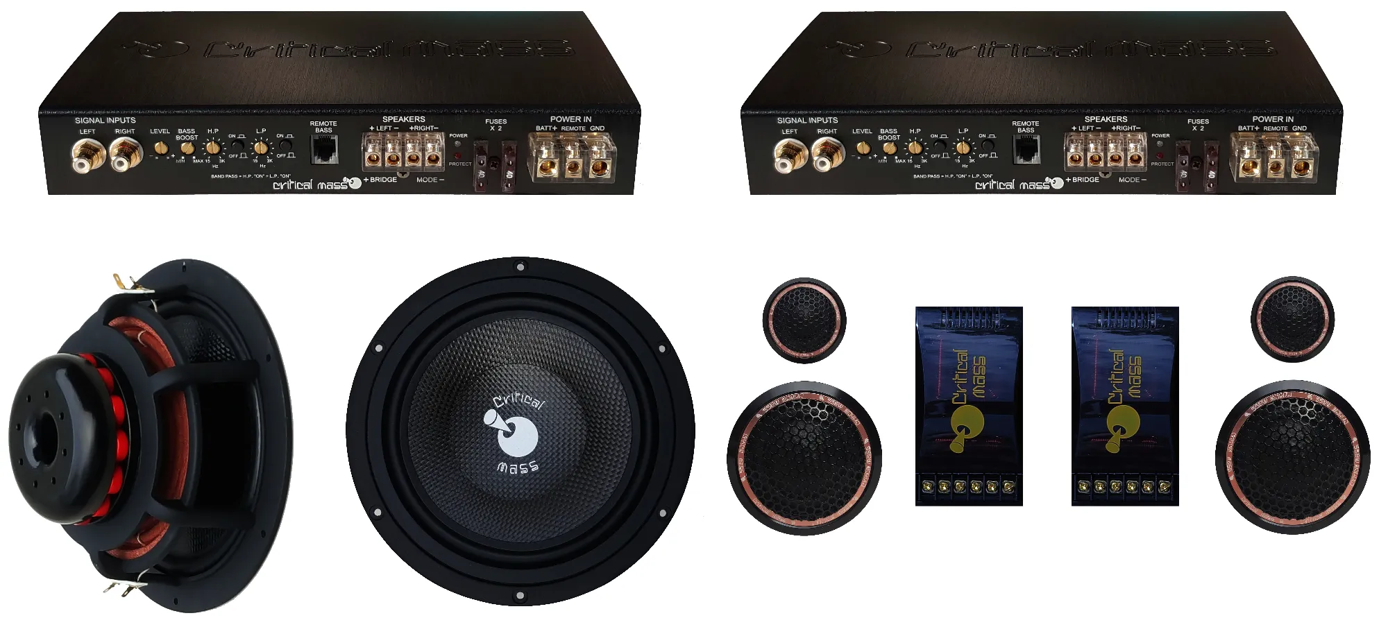 1x ELS-1000.2 set to : High Pass @ 1000Hz for the midrange and tweeter being crossed over with the included 2 way crossover