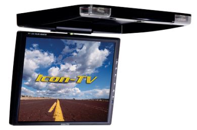 15" Overhead Flip down Monitor. 4x 3 Aspect Ratio, High Res. Built in Dome Lights, Remote control. Built in IR Transmitter 2 Video Inputs, Compact Design.