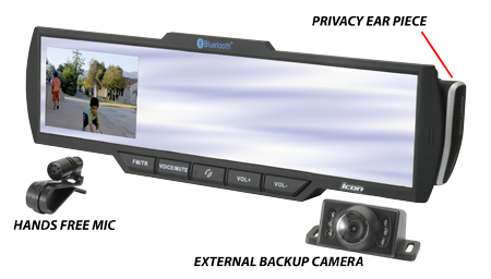 4" TFT LCD Backup Mirror with Smart Bluetooth Earbud Headphone and Night Vision Backup Camera.